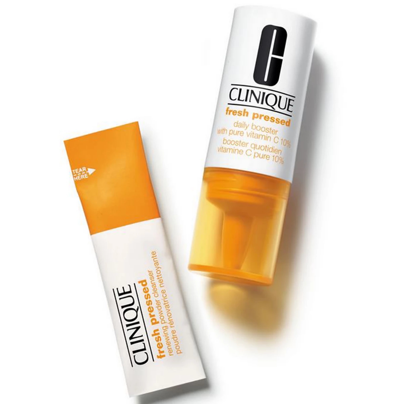 The full power of pure Vitamin C Serum at our highest concentration delivers remarkable ...de-aging results in just 7 days. Pure Vitamin C naturally degrades when exposed to oxygen, so it’s good when it is fresh. Clinique Fresh Pressed facial serum comes in specialized packaging that isolates pure Vitamin C until activation for maximum freshness and potency.
