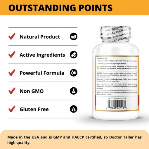 Premium growth-boosting supplement for children and teenagers: Doctor Taller contains vitamins, minerals, ...and essential amino acids, fortified with precious herbs to fuel the growing bodies of kids and teenagers! Vitamin D3, Vitamin K2, Vitamin B1, Vitamin B6: Doctor Taller delivers an innovative amount of vitamins vital to bone growth and overall health. Calcium and Zinc: Doctor Taller nourishes your growing bones with fuel needed to grow – Calcium and Zinc – the key building blocks of the bones. Proprietary Herbal Blend: Doctor Taller contains precious herbs to promote good health and well-being. Our herbal ingredients work harmoniously to enhance the immune system and general health. Essential Amino Acids (EAA): Essential amino acids are instrumental in regulating bone growth and body development. As a result, supplementing your body with amino acids like L-Arginine, L-Ornithine, and L-Lysine can facilitate proper cartilage growth and skeleton development. First 30 days: Your body begins to adapt and absorb the nutrients in Doctor Taller. It should be noted that this period has a huge impact on boosting your growth in the next periods. During this time, you can feel healthier and sleep better after taking Doctor Taller. 2-6 months: This is the period Doctor Taller starts having effects. The product will fuel your bones with a powerhouse of vitamins, minerals, precious herbs, and essential amino acid blend to grow strong while empowering your immune system and overall health, thus triggering faster bone growth. Your body will start to grow more during this and the next period. But how to obtain the best results with our capsules? Just follow a healthy diet, exercise frequently, and sleep properly! Directions: Should be used daily as a dietary supplement for children (8+) and teenagers. Take one (1) capsule twice daily during or after meals. Note : All Exubuy products are imported to Bangladesh from the United States.