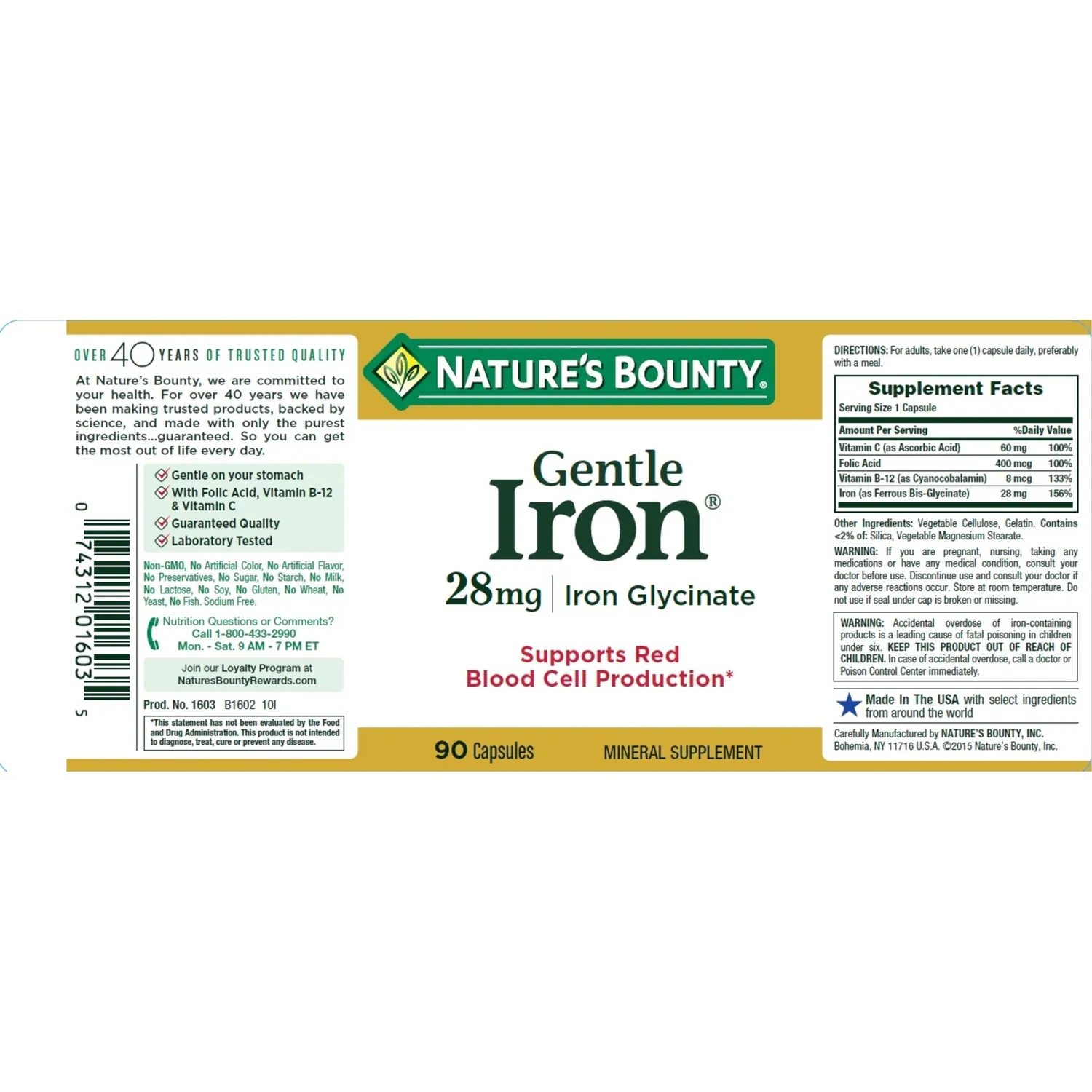 Nature’s Bounty – Gentle Iron 28 mg – 90 Capsules