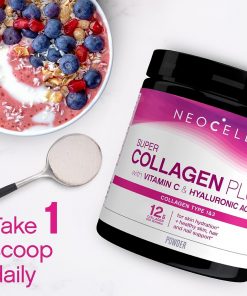 Feed your healthy beauty with NeoCell™ Super Collagen Plus. Collagen is the most ...abundant protein in our bodies by weight. As we get older, our collagen begins to deteriorate and can lead to many common signs of aging. Super Collagen Plus powder helps you fight back and nourish your skin from the inside out*. Combining hyaluronic acid and antioxidants, Super Collagen Plus powder helps to hydrate the skin and support the healthy synthesis of the proteins in our hair and nails*. Keto certified and gluten free, this collagen powder is formulated with type 1 and 3 bovine collagen.
